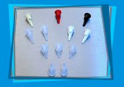 | Bu tip damlalıklara uygun birçok kapak çeşidi mevcuttur ( çocuk korumalı, emniyet halkalı veya halkasız ). Her birinin ağız çapı 18 mm'dir.